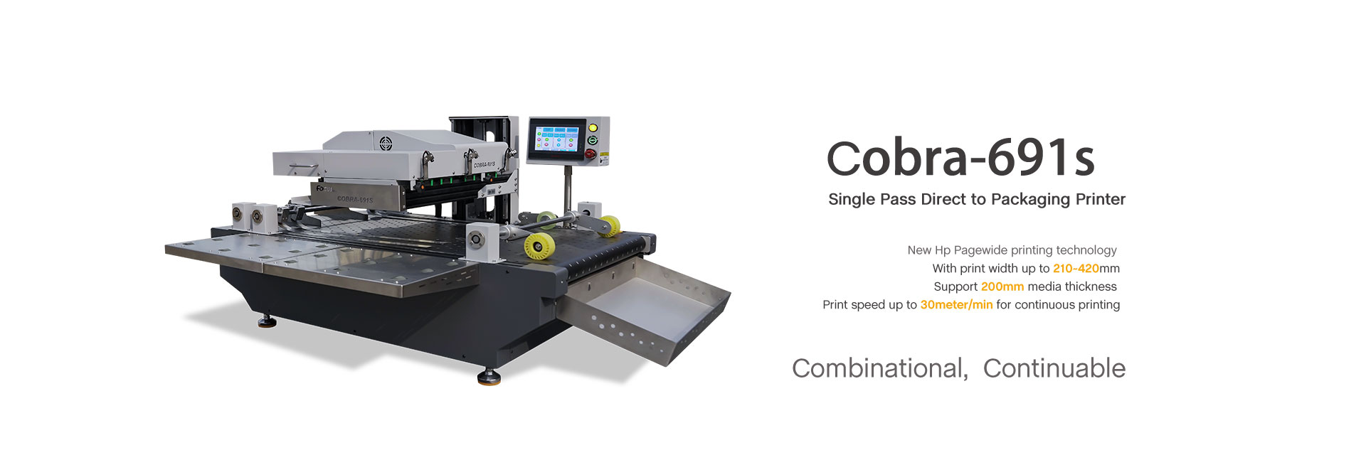 FocusInc single pass printer Cobra 691S is a printer for Corrugated paper, Pizza boxs, Shopping bags, Coffee bags, Paper cups, Envelope, Cards, Napkins, Tissue etc. With fast speed, it’s very popular by the market.
