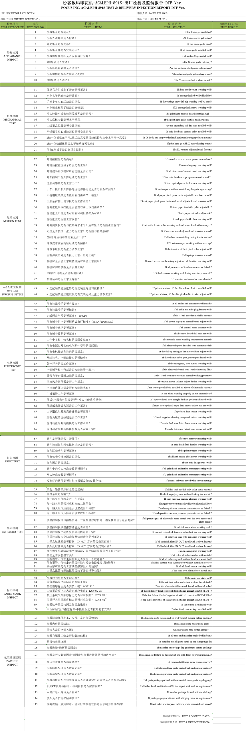 Test & Delivery Inspection Report Ver.21